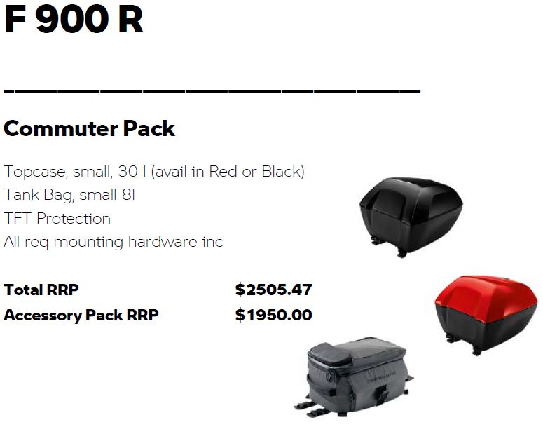Topcase, small, 30 l (avail in Red or Black) Tank Bag, small 8l TFT Protection All req mounting hardware inc